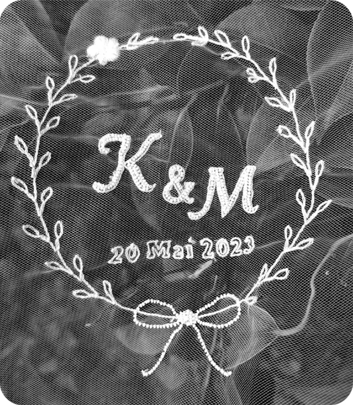 Personnalisation de voiles de mariage et accessoires